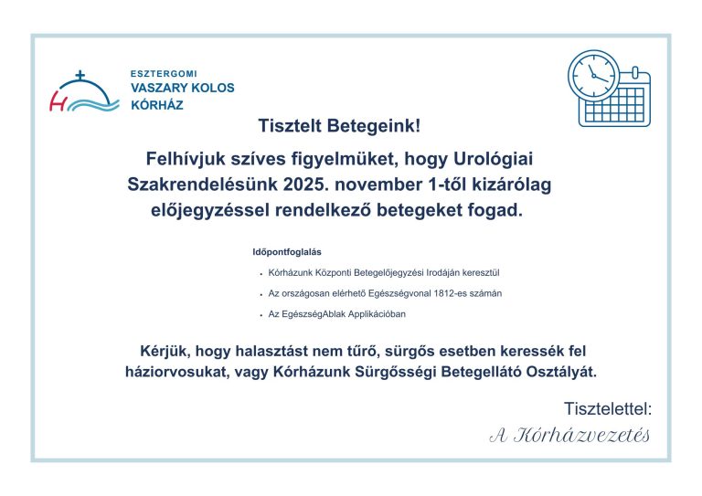 Novemberben indul az Esztergomi Vaszary Kolos Kórház Tegyünk együtt az egészségünkért! programja, amely az egészségtudatos életmód közvetítését tűzi ki célul....