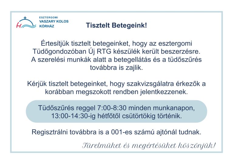 A lakosság figyelmébe ajánljuk, hogy február 11-én, a Betegek világnapján tartott ünnepélyes szentmisével megújult az Esztergomi Vaszary Kolos Kórház kápolna...