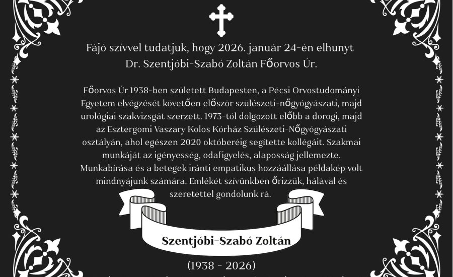 Fájó szívvel tudatjuk, hogy elhunyt dr. Szentjóbi-Szabó Zoltán Főorvos Úr